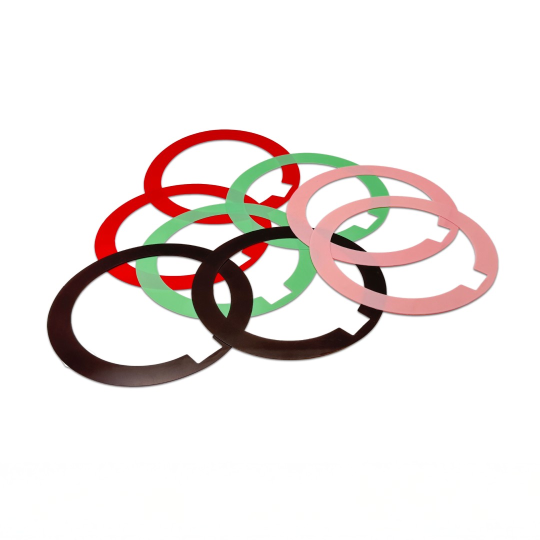 Our slitter shims are color-coded to help you save on labor. The color tells the thickness, making distinguishing between thicknesses quick and easy.